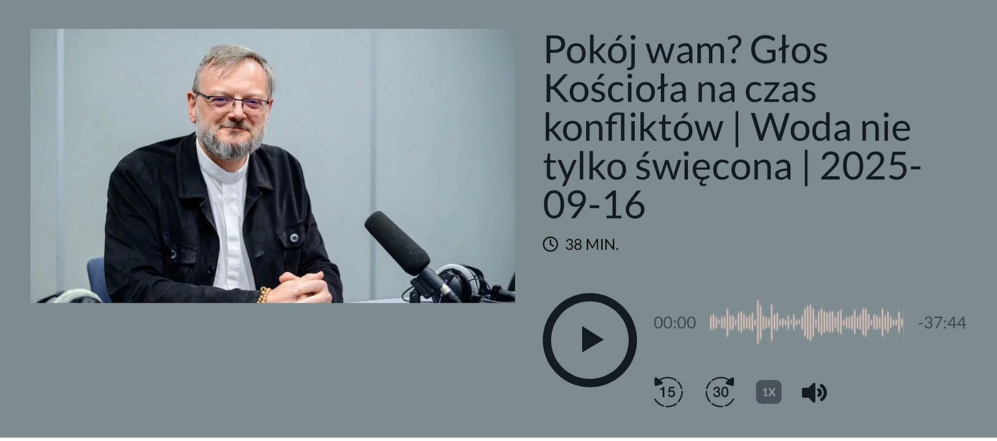 Kilka miesięcy temu rozmawiałem z redaktor Izą Berkowską w Radiu Łódź o tym, jak Kościół naucza o pokoju i wojnie. O przejściu od koncepcji „wojny sprawiedliwej” do „uprawnionej obrony” — i dalej, w stronę rozbrojenia. W czasie, gdy za wschodnią granicą trwa wojna, a my cieszymy się ze wzmacniania potencjału obronnego, moje słowa dla niektórych mogły się wydawać naiwne, zbyt pacyfistyczne.
